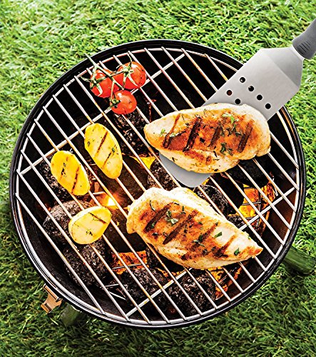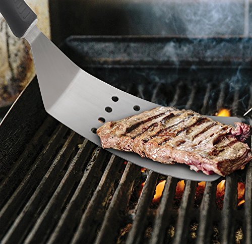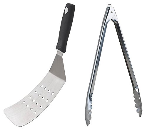 Studio : HIC / The World's Greatest Publisher : HIC / The World's Greatest Product Description Bundle includes one (1) The World's Greatest Flippin' Good Slotted Burger Turner, Flipper Grill Spatula, Long, 9.5-Inches and one (1) HIC Spring Locking Kitchen Cooking Serving Food Barbecue Tong, Scalloped Gripping Edge, Stainless Steel, 12-Inch. The World's Greatest Flippin' Good Burger Turner is so flexible it's incredible. 18/8 stainless steel is perforated allowing fat and juices to drip back into pan. Dishwasher safe. HIC Spring Locking Tong for securely gripping, lifting and turning foods, and draining cooking liquids for less messy serving. Made from stainless steel; sturdy and durable; won't react with foods; easy-pull locking tab locks tongs closed for easy, compact storage. Scalloped grips hold foods securely and drains liquids for mess-free serving; spring action keeps tongs open and ready; pull tab locks them closed. Perfect for cooking meat, poultry, veggies and stir-fries, tossing salad, and mess-free serving; use in the kitchen with metal cookware and BBQ grills. Easy to clean; hand wash in warm, soapy water. 0