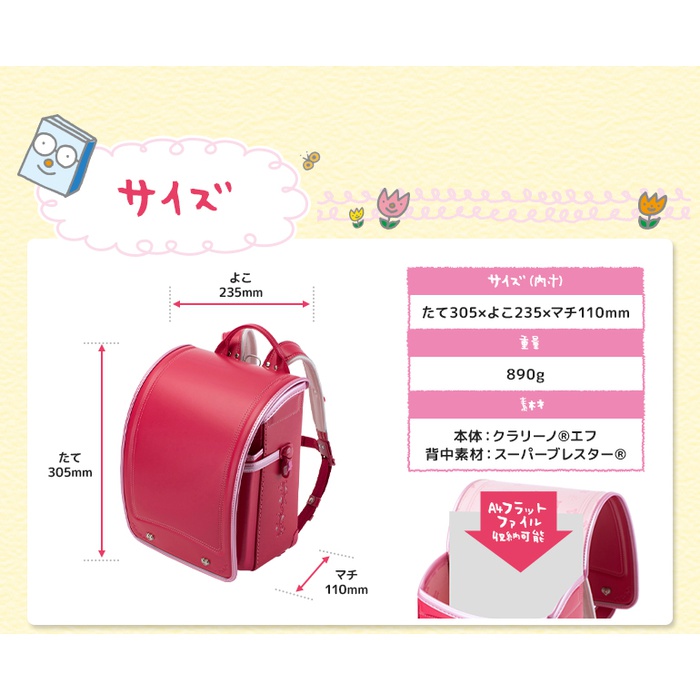 원본상품명: DEAL2/1 10時~2/8 9:59P20%バックランドセル ふわりぃ 女の子 カ?マイン×ピンクステッチ セピア×パ?ルピンク ストロベリ?×パ?ルチェリ? かわいい おしゃれ おすすめ 2018年最新作 日本製 早期割引10%OFF ?量890g A4フラットファイル?? クラリ?ノF