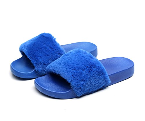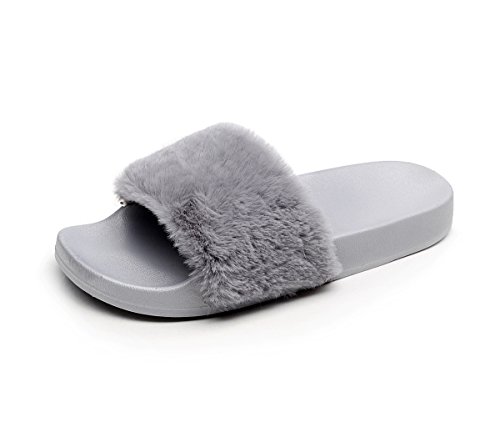 Havina Women's Faux Fur Soft Slide Flat Slipper Flip Flop