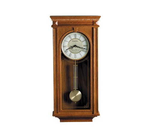 -. Title : Bulova C4419 Manorcourt Clock, Golden Oak Finish