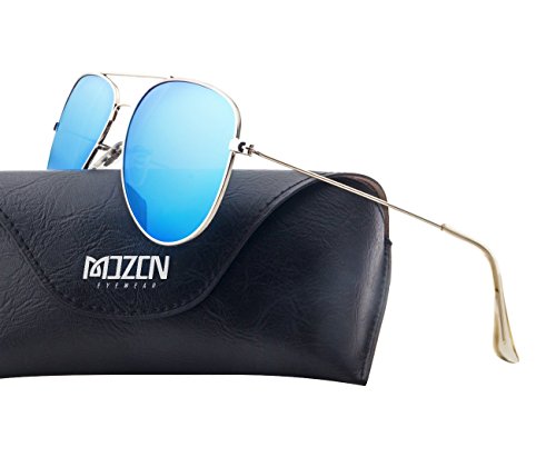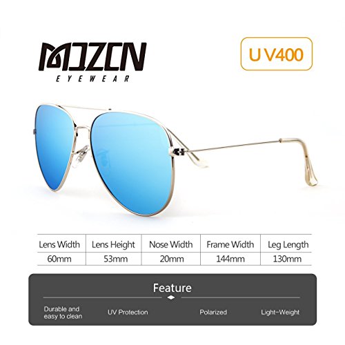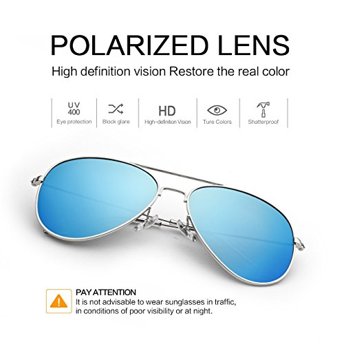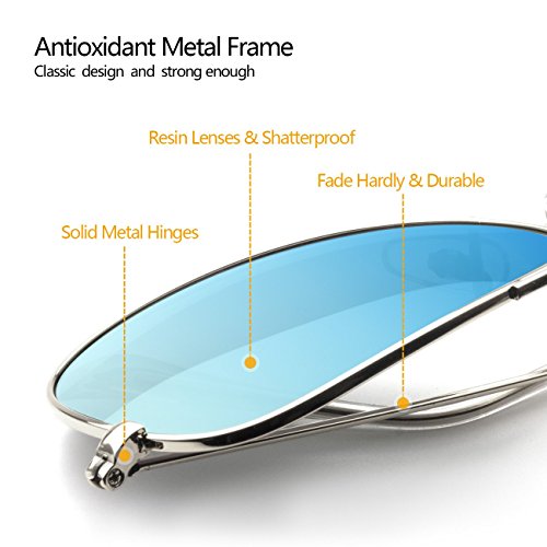 EOORAU Mirrored Aviator Polarized Sunglasses for Mens & Womens UV-400 (Blue Lens/Silver Frame)
