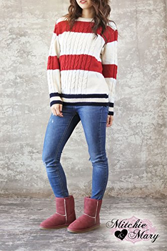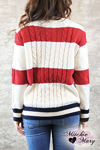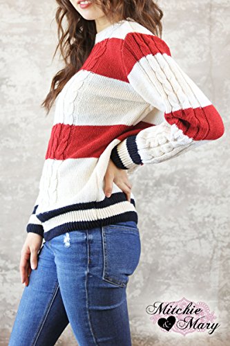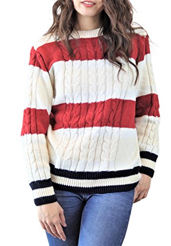 -. Feature : 高校生・大学生だけでなく幅広い世代の女性にも似合う大人かわいいクルーネックのデザインニットです。 / 暖かい赤のボーダーや裾の黒のストライプに縄編みなどの模様編みが印象的なセーターで、カジュアルすぎずこびないかわいらしさを演出出来ます。 / 比較的ゆったりした1サイズなので、普段Sサイズの方にはオーバーサイズな雰囲気で、Lサイズの方にはジャストフィットで楽しめます。 / メイン素材:コットン ポリエステル 重量:400g サイズ:フリー 肩幅42 着丈65 身幅50 袖丈55 海外製品につき若干の誤差が生じる場合もございます。 / 海外製品につき、まれに縫製の甘さ・匂い・微細な汚れ・シワ・臭いなどある場合がございます。ご使用が著しく困難な場合はまずショップへお問合せください。