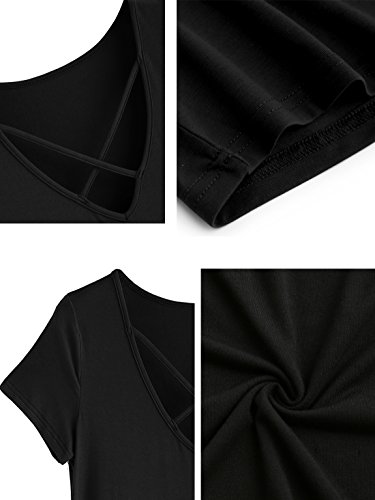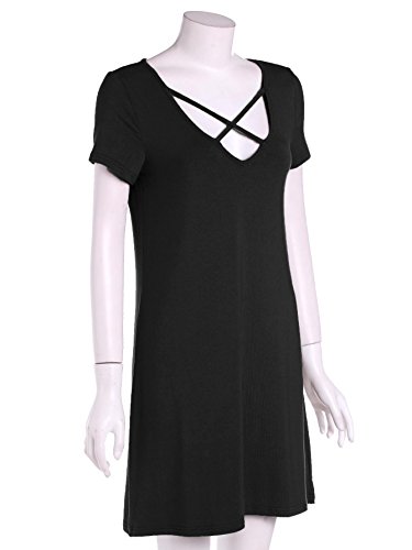 Casual V neck short t-shirt dresses, above knee high, design for Petite Women(weight:80lbs-150lbs, height:5'2"-5'9")