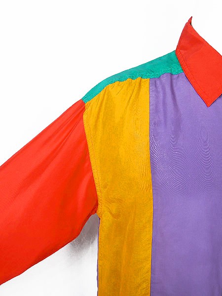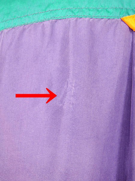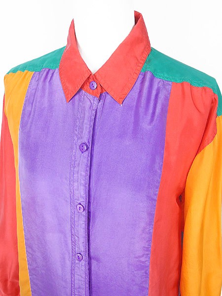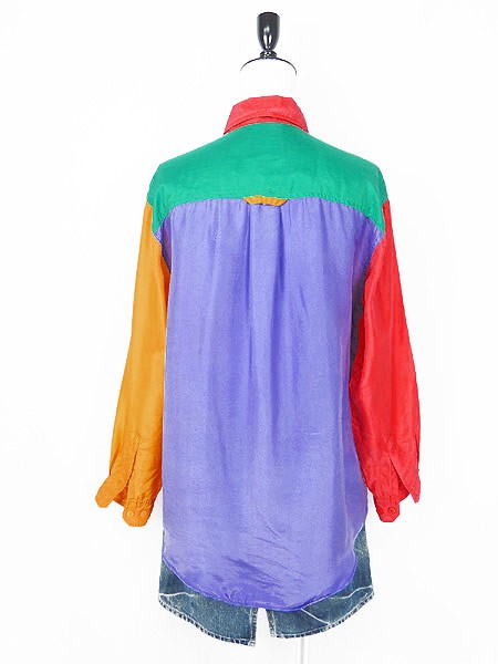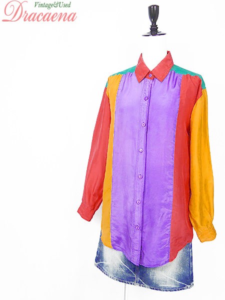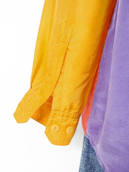 Ladies ブランド カラー朱色・オレンジ・紫・緑 メール便可 コンディション★★★ 素材シルク 表記サイズS 実寸サイズ 着丈 72 cm 身幅 52 cm 肩幅 46 cm 袖丈 52 cm ※ウエスト・ヒップ以外は平置き採寸【code】#b