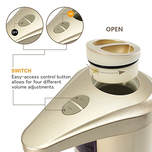 【Touch Free&Adjustable Dispensing Amount】 - Sanitary, it makes reactions when your hands are close to the reaction range. Minimizes risk of spreading germs. There are 4 adjustable levels of dispensed amount by (+/-) buttons, always have your desired one. It can save a lot of soap cost!