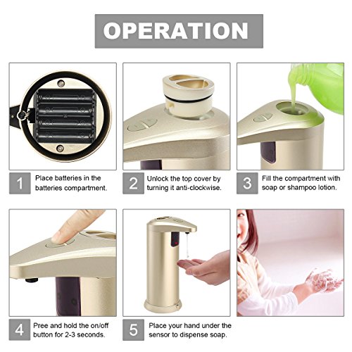 【Tips For Use】 - If the device does not work when you first use, please follow these steps: 1.Increase the level; 2.Repeat to place your hand under the sensor for several times. This is because there's empty space between the liquid to the liquid outlet. -Please read the NOTE in the description before using it. Any problem, please feel free to contact our customer service. Thanks so much for reading!