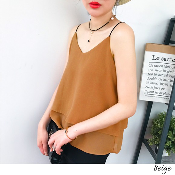 ◆商品紹介◆シンプルで涼しげな、シフォンレイヤードキャミソール♪華奢なストラップが女っぽさを演出。使える即買いアイテムです!◆素材感・サイズ感◆[素 材]ポリエステル[伸 縮]なし[透け感]ややあり◆モデル◆・身長168cm・Mサイズ着用※お客様の体型や身長により写真のモデルとの着用感に多少の違いが出る場合がございます。◆サイズ◆※サイズ詳細は平置きで測った際のサイズとなっておりますので多少の誤差(約2-3cm)は予めご了承下さい。総丈:約52cm バスト:約90cm※画像の色味はお使いのパソコンやスマートフォン等モニター環境により実際の色味とは若干異なる場合がございます。