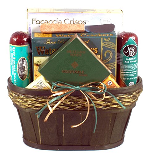 -. Binding : Grocery -. Brand : Gift Basket Village -. EAN : 0705332269766 -. Feature : Features some of our favorite meats and cheeses, this snack gift basket is a great gift for almost anyone / P.R.Iced just right to fit into any budget, this meat and cheese gift basket is perfect for any occasion / Your gift baskets are made at the time you order usually ships the same day that we receive your order / Made in the USA at Gift Basket Village, Florida by our own professional gift basket designers -. IsAdultProduct : 0 -. Label : Gift Basket Village -. Manufacturer : Gift Basket Village -. NumberOfItems : 1 -. PackageQuantity : 1 -. ProductGroup : Grocery -. ProductTypeName : GROCERY -. PublicationDate : 2014-11-17 -. Publisher : Gift Basket Village -. ReleaseDate : 2014-11-17 -. Studio : Gift Basket Village -. Title : Gift Basket Village Snacker's Delight Cheese and Sausage -. UPC : 705332269766