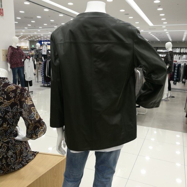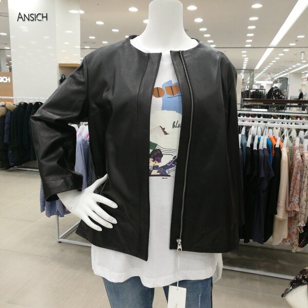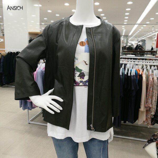 라운드카라의양가죽라이더자켓입니다적당한 길이감으로가볍게입으시기좋습니다칼라감이 카키에 가깝습니다