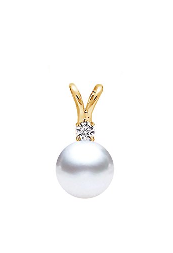 -. Feature : A lustrous white Akoya cultured pearl is set in a charming 14k yellow gold and diamond mounting. One brilliant diamond accents the cultured pearl (0.02 total carat weight). / The cultured pearl is very fine AAA quality, round shape, with brilliant luster and very clean surface. / The cultured pearl is hand selected from pearl farms in Japan to ensure its highest quality. The jewelry is beautifully made by our skilled jewelers in USA. / The jewelry comes with a high quality jewelry box and a certificate of authenticity. / 30 Day Money Back Guarantee.