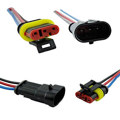 MUYI 5 Kit 3 Pin Way 18-14 AWG Waterproof Electrical Connector with 3.94 inches Wire IP67 AMP Superseal Wire Harness PA66 Nylon Housing Pigtail