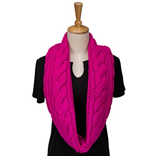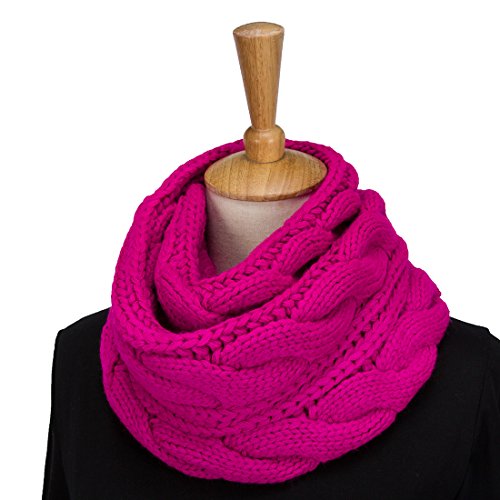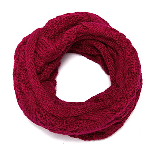 ALLMILL Womens Thick Ribbed Knit Winter Infinity Circle Loop Scarf (Deep Pink)