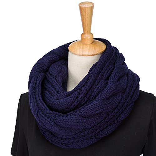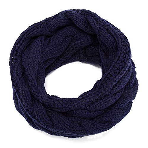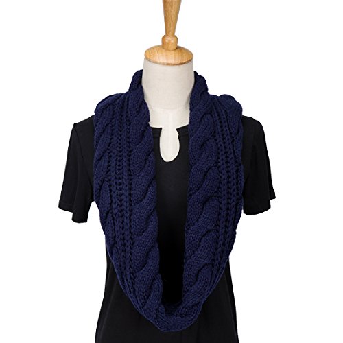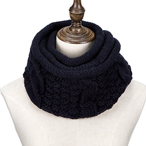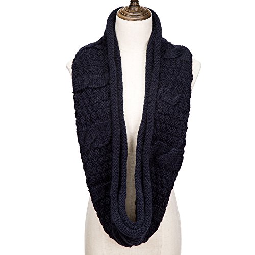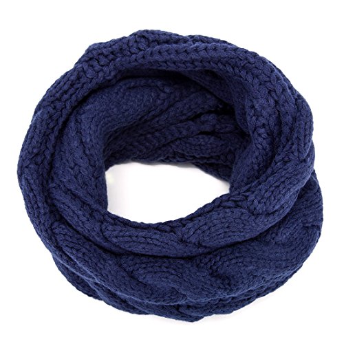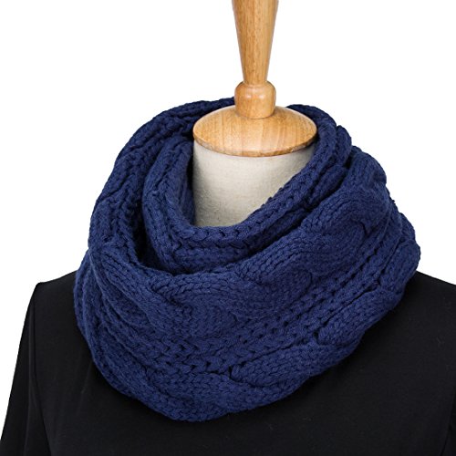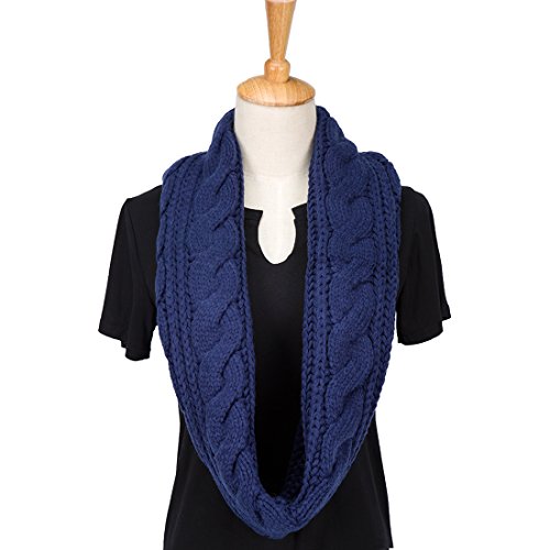 ALLMILL Womens Thick Ribbed Knit Winter Infinity Circle Loop Scarf (Deep blue-2)