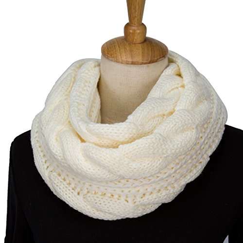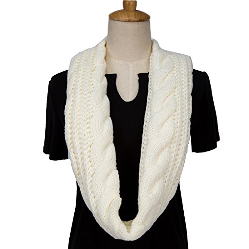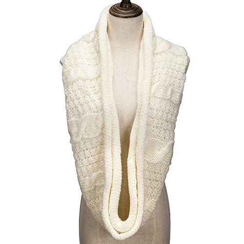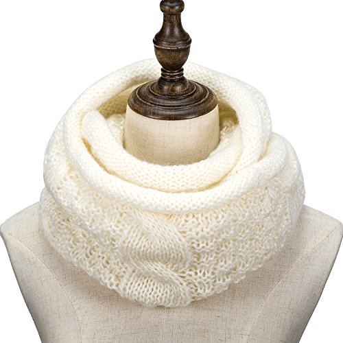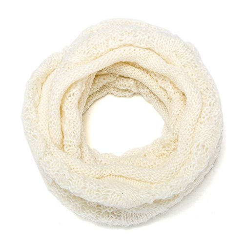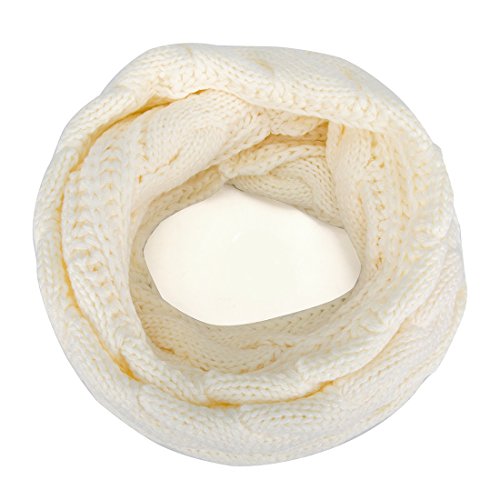 ALLMILL Womens Thick Ribbed Knit Winter Infinity Circle Loop Scarf (Milky White)