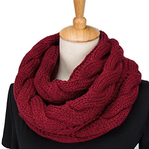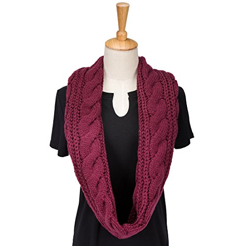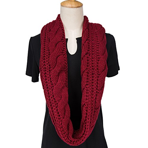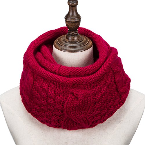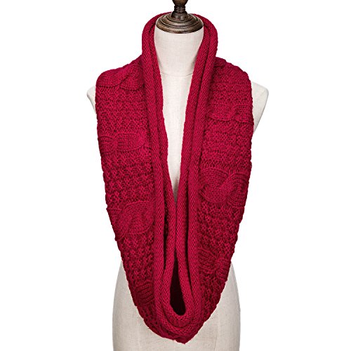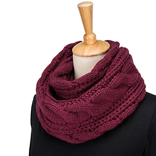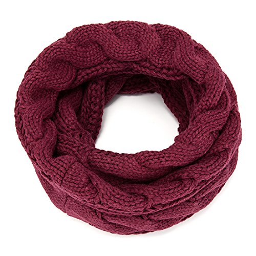 ALLMILL Womens Thick Ribbed Knit Winter Infinity Circle Loop Scarf (Wine Red-2)