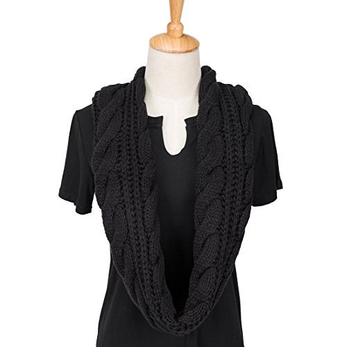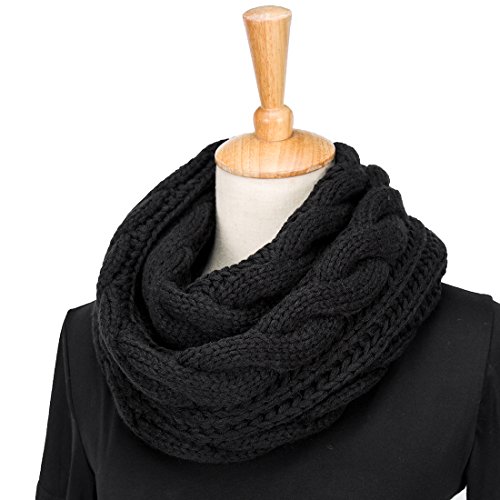 ALLMILL Womens Thick Ribbed Knit Winter Infinity Circle Loop Scarf (Black)