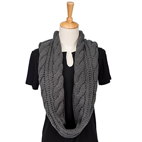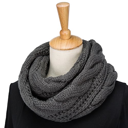 ALLMILL Womens Thick Ribbed Knit Winter Infinity Circle Loop Scarf (Dark Grey)