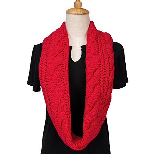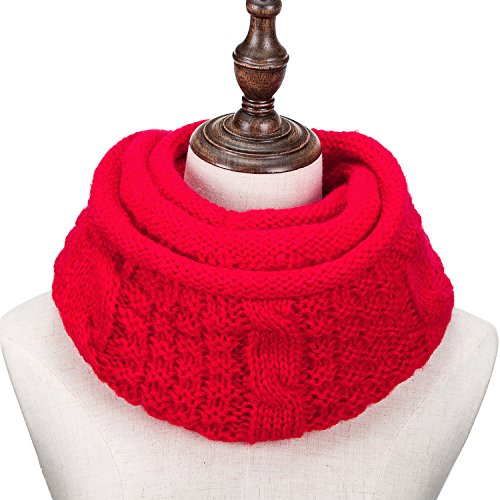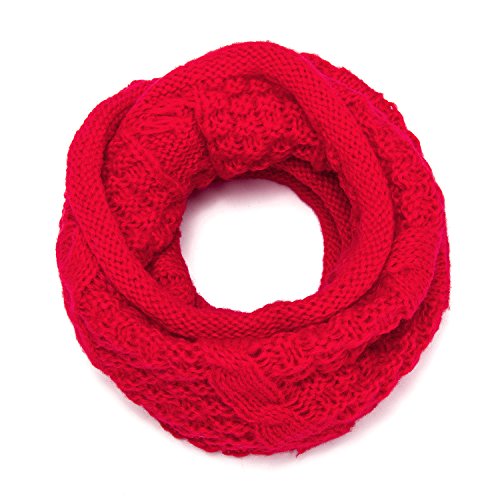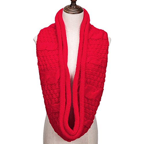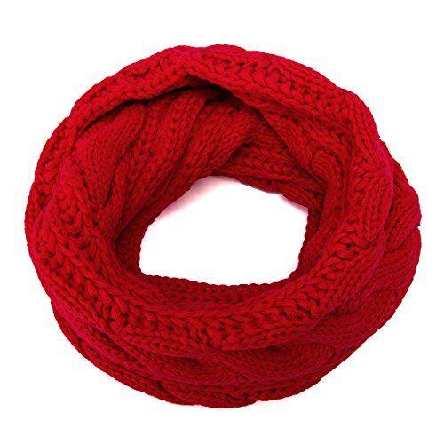 ALLMILL Womens Thick Ribbed Knit Winter Infinity Circle Loop Scarf (Red)