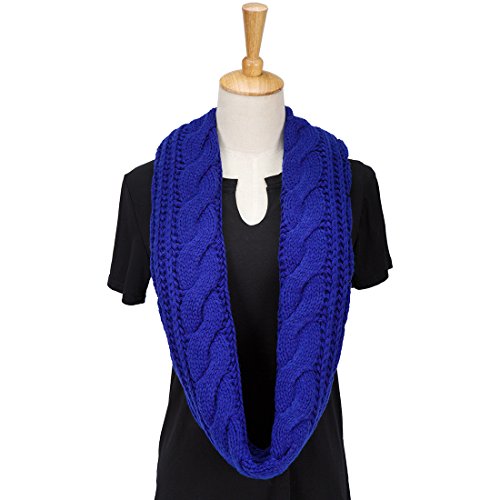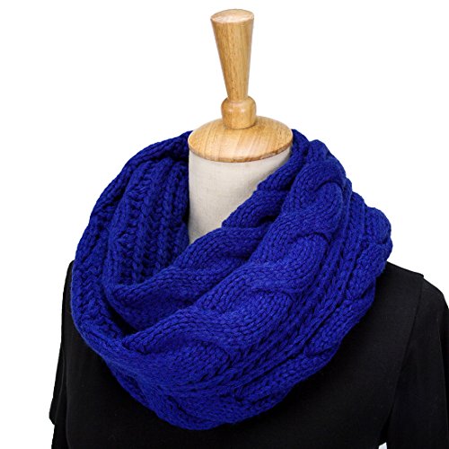 ALLMILL Womens Thick Ribbed Knit Winter Infinity Circle Loop Scarf (Blue)