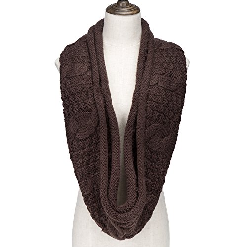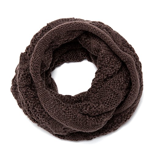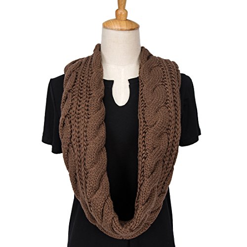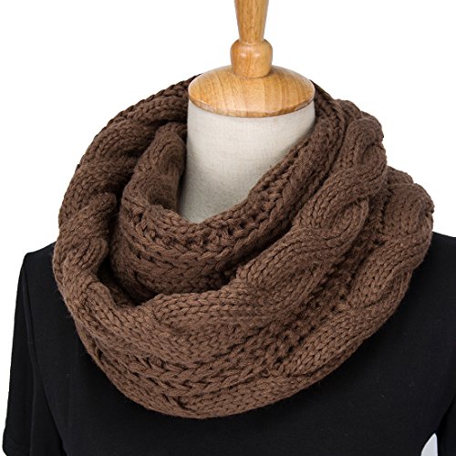 ALLMILL Womens Thick Ribbed Knit Winter Infinity Circle Loop Scarf (Coffee)