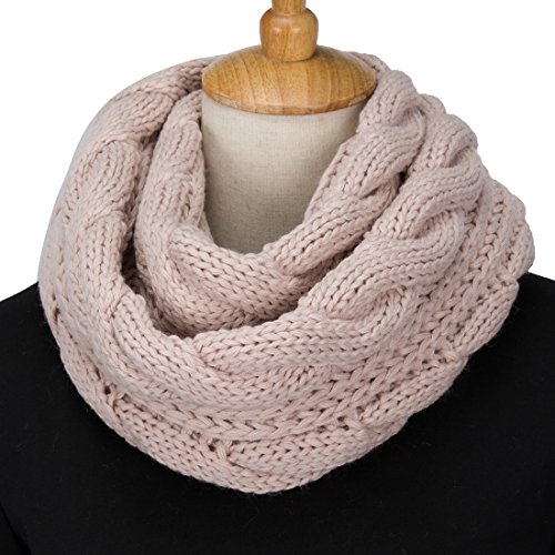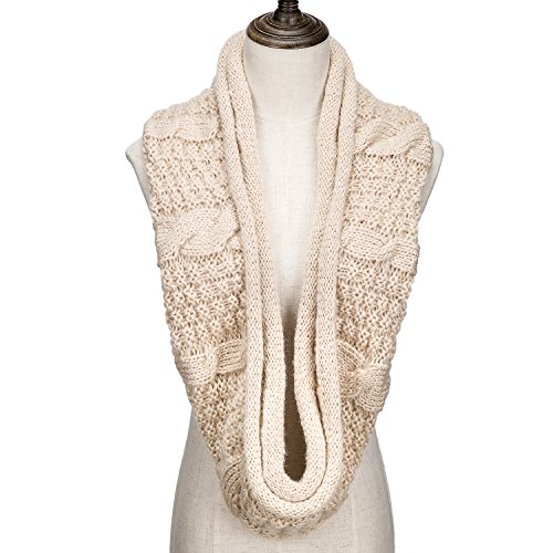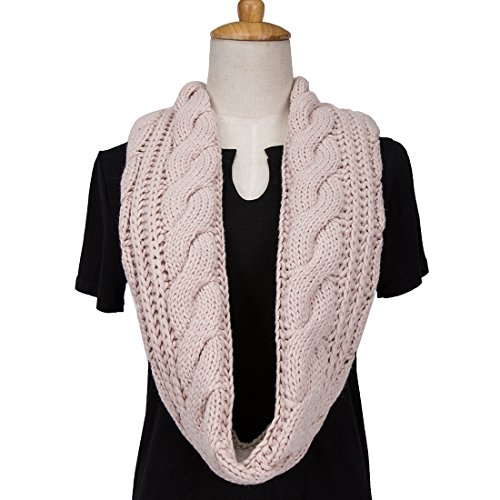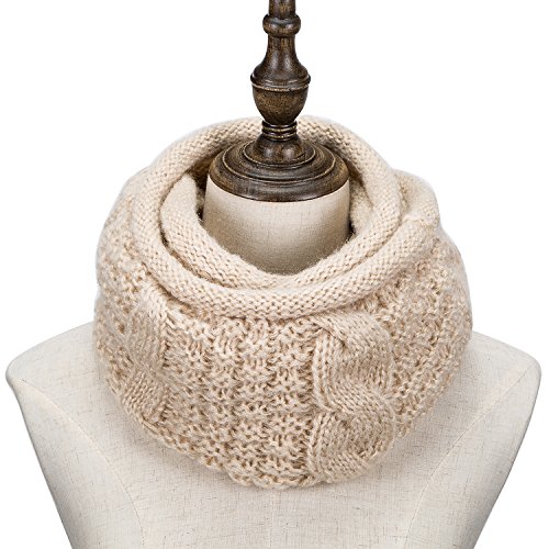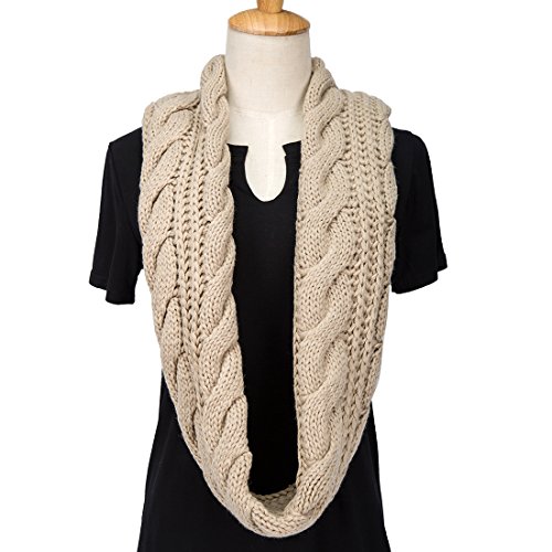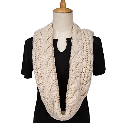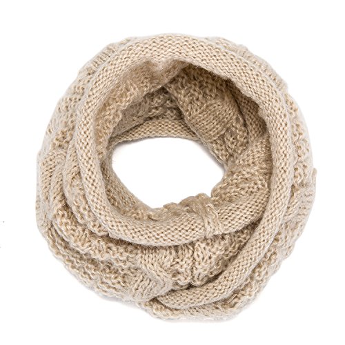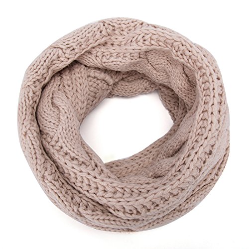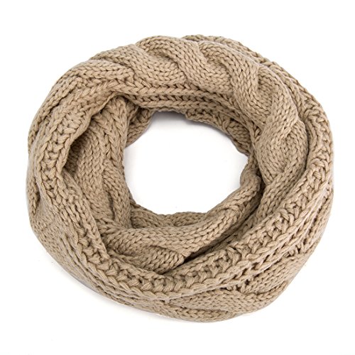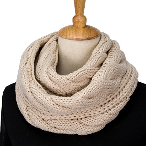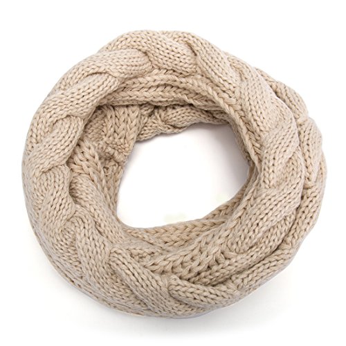ALLMILL Womens Thick Ribbed Knit Winter Infinity Circle Loop Scarf (Beige)