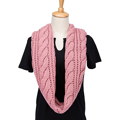 ALLMILL Womens Thick Ribbed Knit Winter Infinity Circle Loop Scarf (Pink)
