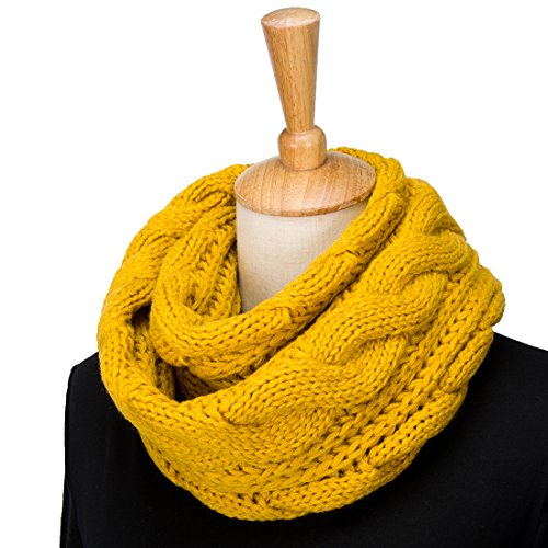 ALLMILL Womens Thick Ribbed Knit Winter Infinity Circle Loop Scarf (Yellow)