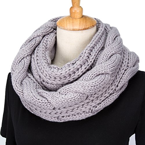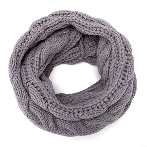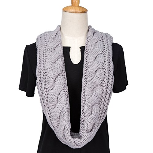 ALLMILL Womens Thick Ribbed Knit Winter Infinity Circle Loop Scarf (Light Grey)