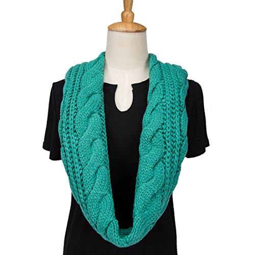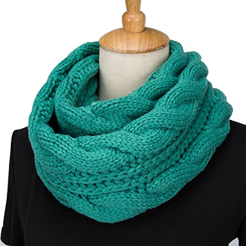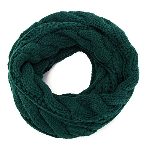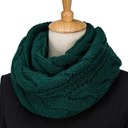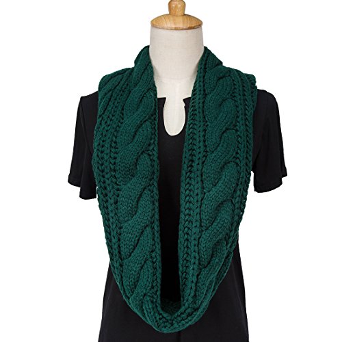 ALLMILL Womens Thick Ribbed Knit Winter Infinity Circle Loop Scarf (Dark Green)