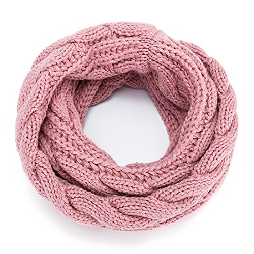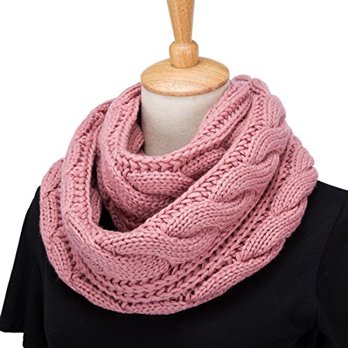 ALLMILL Womens Thick Ribbed Knit Winter Infinity Circle Loop Scarf (Rose)