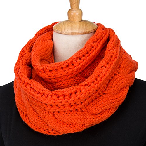 ALLMILL Womens Thick Ribbed Knit Winter Infinity Circle Loop Scarf (Orange)
