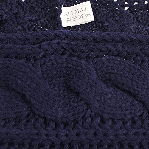ALLMILL Womens Thick Ribbed Knit Winter Infinity Circle Loop Scarf (Deep blue)