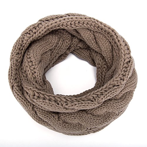 ALLMILL Womens Thick Ribbed Knit Winter Infinity Circle Loop Scarf (Khaki-2)