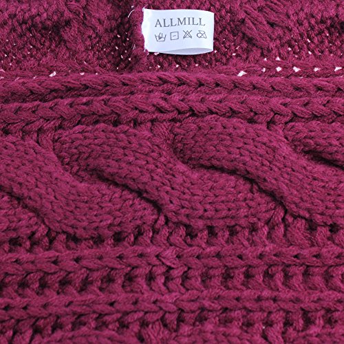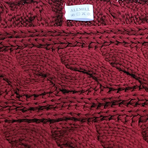 ALLMILL Womens Thick Ribbed Knit Winter Infinity Circle Loop Scarf (Wine Red)