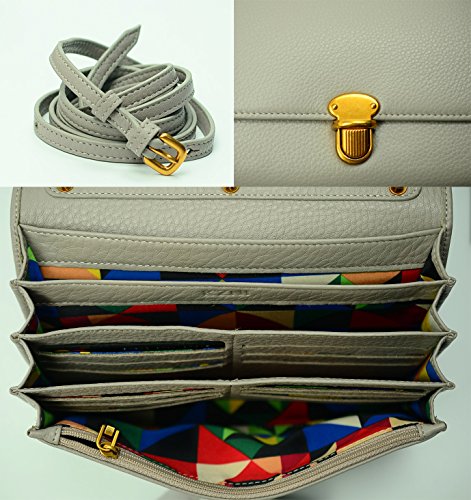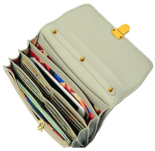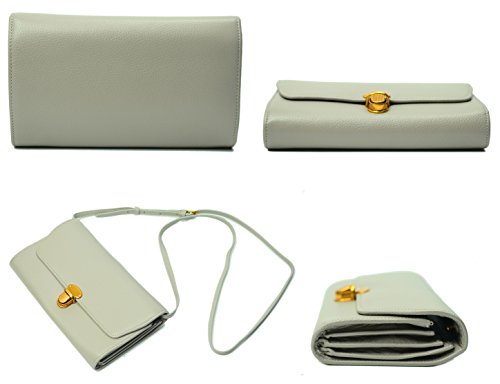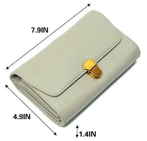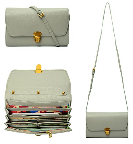 KZNI Women Crossbody Bag Genuine Leather Purse Clutch Card Holder Ladies Wallet (Light Grey)