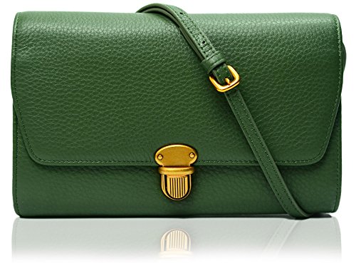 KZNI Women Crossbody Bag Genuine Leather Purse Clutch Card Holder Ladies Wallet (Green)