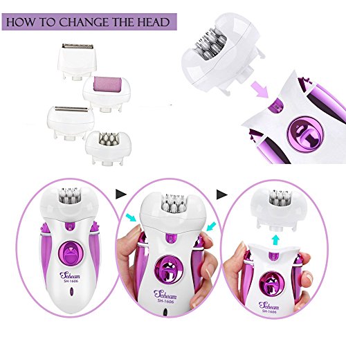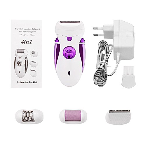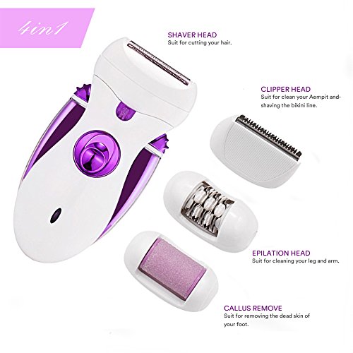 - 4-in-1 Attachments Include: Epilator head, callus remover head, shaver head and Hair Clipper