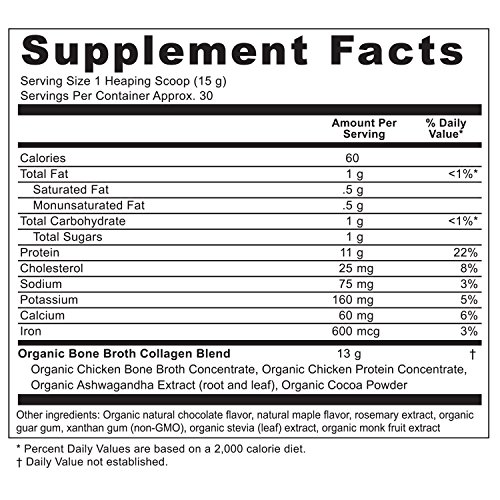 Studio : Ancient Nutrition Publisher : Ancient Nutrition Binding : Health and Beauty Product Description If you want the ultimate low-carb, low-sugar superfood... then this could be the most important collagen protein supplement you'll ever purchase! Organic Bone Broth Collagen Chocolate is an amazing new protein supplement that brings all the benefits of organic, robust, real homemade bone broth AND collagen without having to spend hours boiling bones in your kitchen. For as long as humans have been cooking food over fire, bone broths - chicken, beef, turkey, fish and more - were staples in the traditional diets of every culture. And for good reason. Of course, an overall balanced diet and a healthy lifestyle are critical. But Organic Bone Broth Collagen Chocolate is something we should all consider adding to our diet for these ingredients - ingredients that are incredibly hard to find in just one product. 0