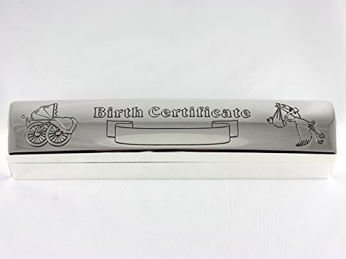 -. Binding : Baby Product -. Brand : Skyway Products -. Color : Silver -. EAN : 0616245667160 -. Feature : Keep Your Child's Birth Certificate Safe While Proudly Displaying It in This Beautiful Etched Birth Certifcate Case Holder / Beautiful Chrome Polished Non-Tarnish Finish Makes This A Perfect Keepsake / Engravable So You Can Add That Personal Touch That Will Last A Lifetime / Comes With A Birth Record Certificate and Blue Ribbon / Birth Certificate Holder Measures: 9" x 1.75" x 1.5" Inches -. IsAdultProduct : 0 -. Label : CI -. Manufacturer : CI -. ProductGroup : Baby Product -. ProductTypeName : BABY_PRODUCT -. Publisher : CI -. Studio : CI -. Title : Skyway Destiny Keepsake Birth Certificate Holder Case with Birth Record Paper Silver - Engravable -. UPC : 616245667160
