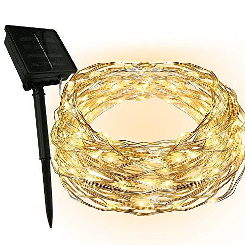 100 LED 33FT Copper Wire Solar Outdoor Waterproof Fairy String Lights (Warm White)