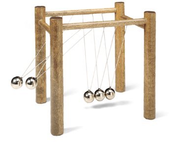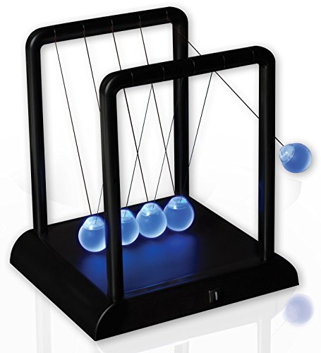 Studio : Generic Publisher : Generic Binding : Office Product Product Description This classic desktop display piece has become a must have for office decor. Swing one steel marble back, let it go, and watch as kinetic energy causes the one on the opposite side to swing the same distance! If you're feeling saucy one day, try swinging two or three at once- just don't pass out from the excitement! This desktop display model is a version of Newton's cradle, a device that demonstrates conservation of momentum and energy via a series of identically sized swinging spheres. When one ball on the end is lifted and released, the resulting force travels through the line and pushes the last ball upward. Because it uses Newton's Laws, it was named after Sir Isaac Newton 0