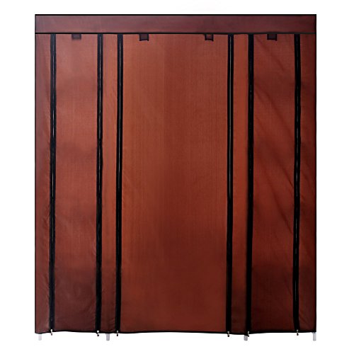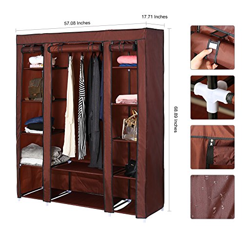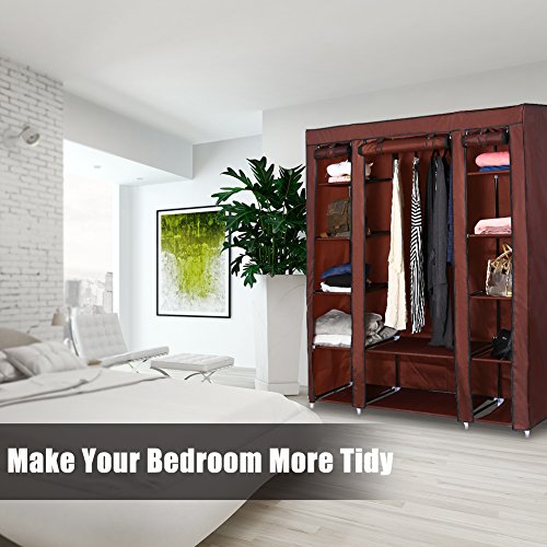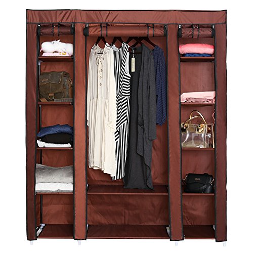 ROKOO Clothes Closet Wardrobe Portable Home DIY Modular Oxford Fabric Storage Organizer with Hanging Rod Larger Space 12 Storage Shelves (Coffee)