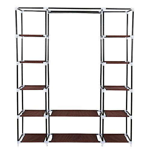 Capacious Closet Wardrobe - Ample room, movable clothes hanging rod and 12 storage shelves offer enough space for both longer outfits and folded clothes, for easy access to whatever you choose to store