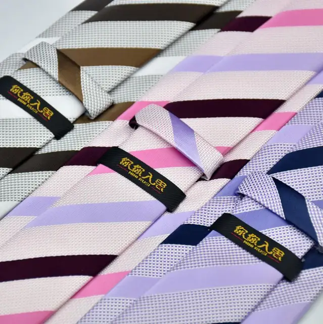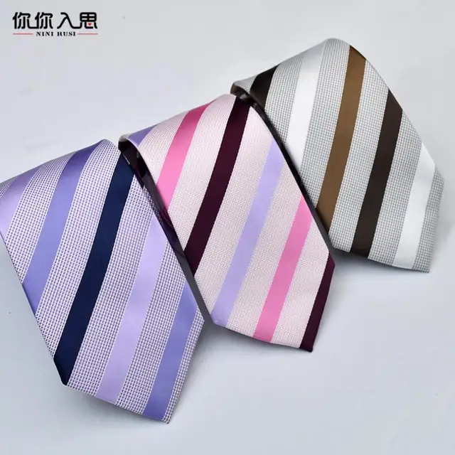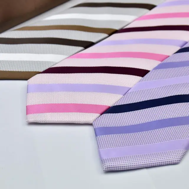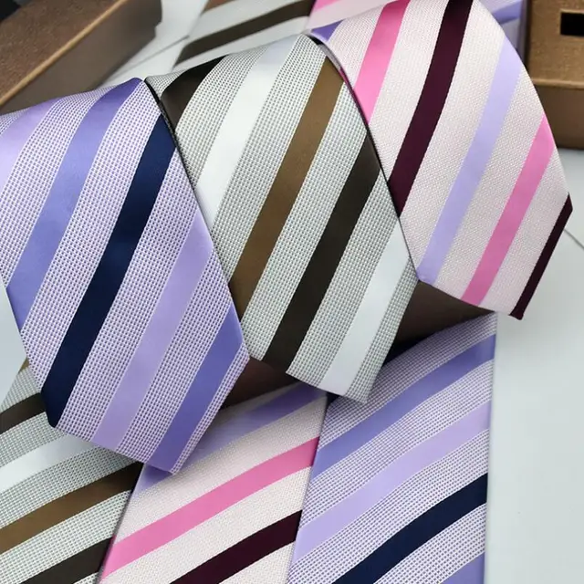 | [해외]남성 넥타이 클래식 스트라이프 무늬 폴리 짠 퍼플 핑크 넥타이 남성 비즈니스 신랑 들러리 웨딩 파티 캐주얼 넥타이 |