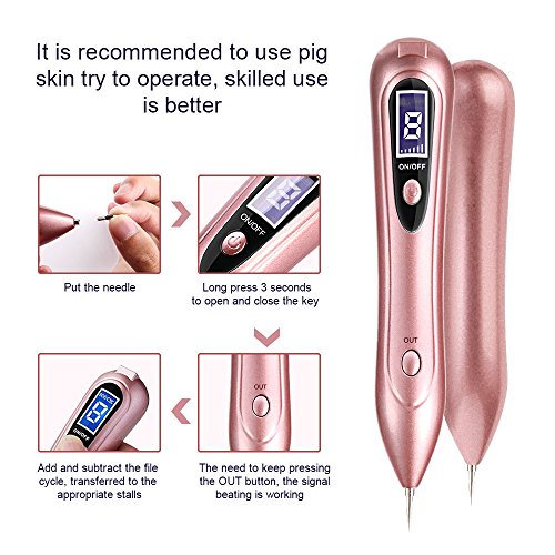 - ✔ EASY TO OPERATE: This mole removal pen is not complicated, easy to grip and operate. Just put the needle on, turn it on, choose an appropriate strength. Keep pressing the out button, and tap with the pen to work through the mole. You'll find the pigments will be gone instantly. Please take some time to practice on your feet or arms with 1 strength levels follow the instructions.