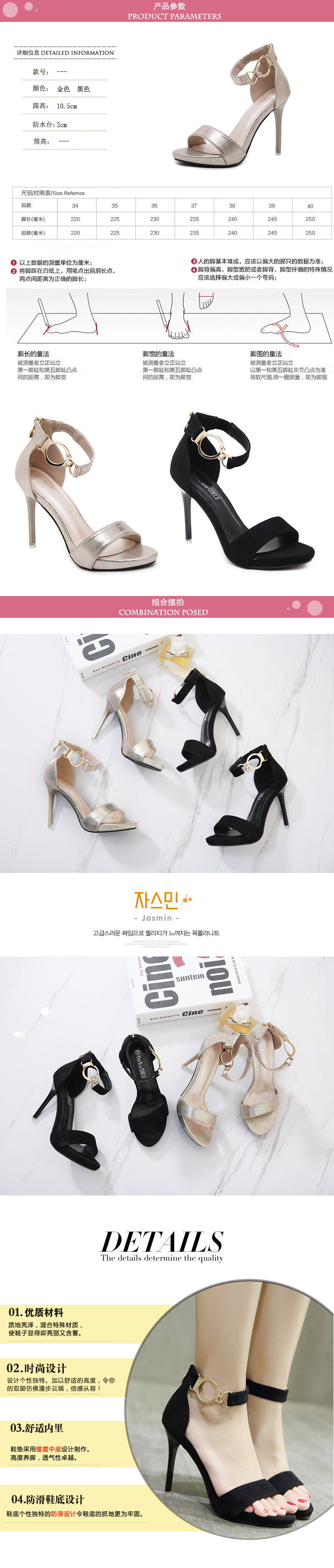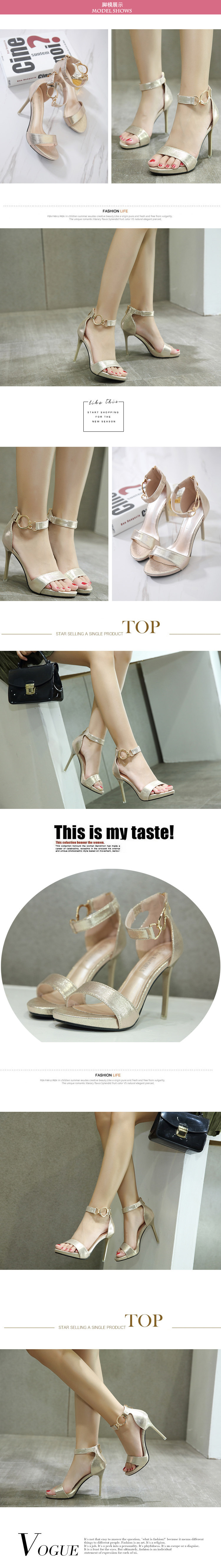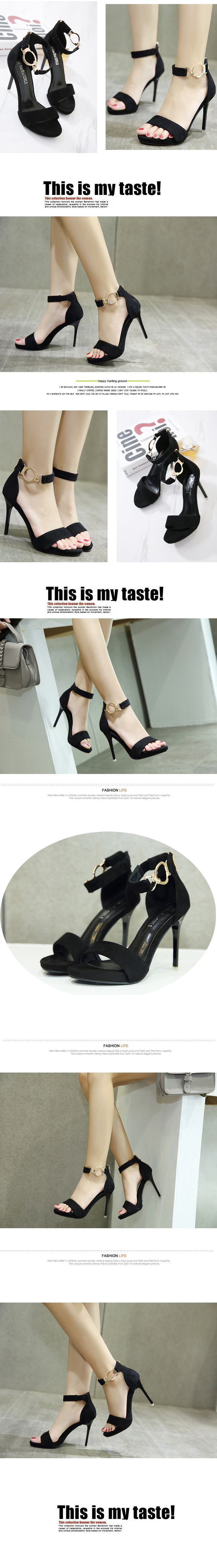 2017新款一字带凉鞋细跟女夏时尚百搭露趾性感夏天黑色高跟鞋防滑