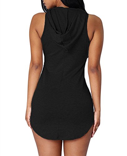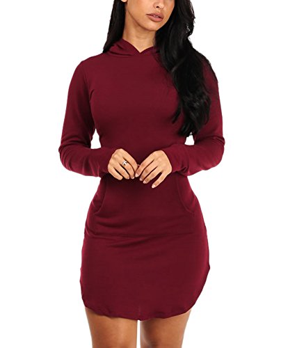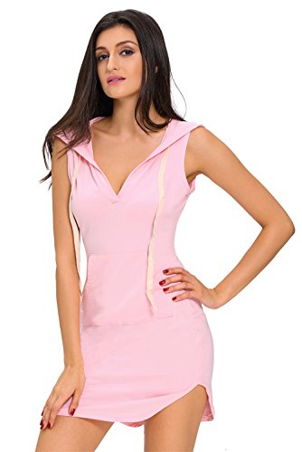 Cfanny Women's Sexy V Neck Cotton Sweat Hoodie Mini Dress