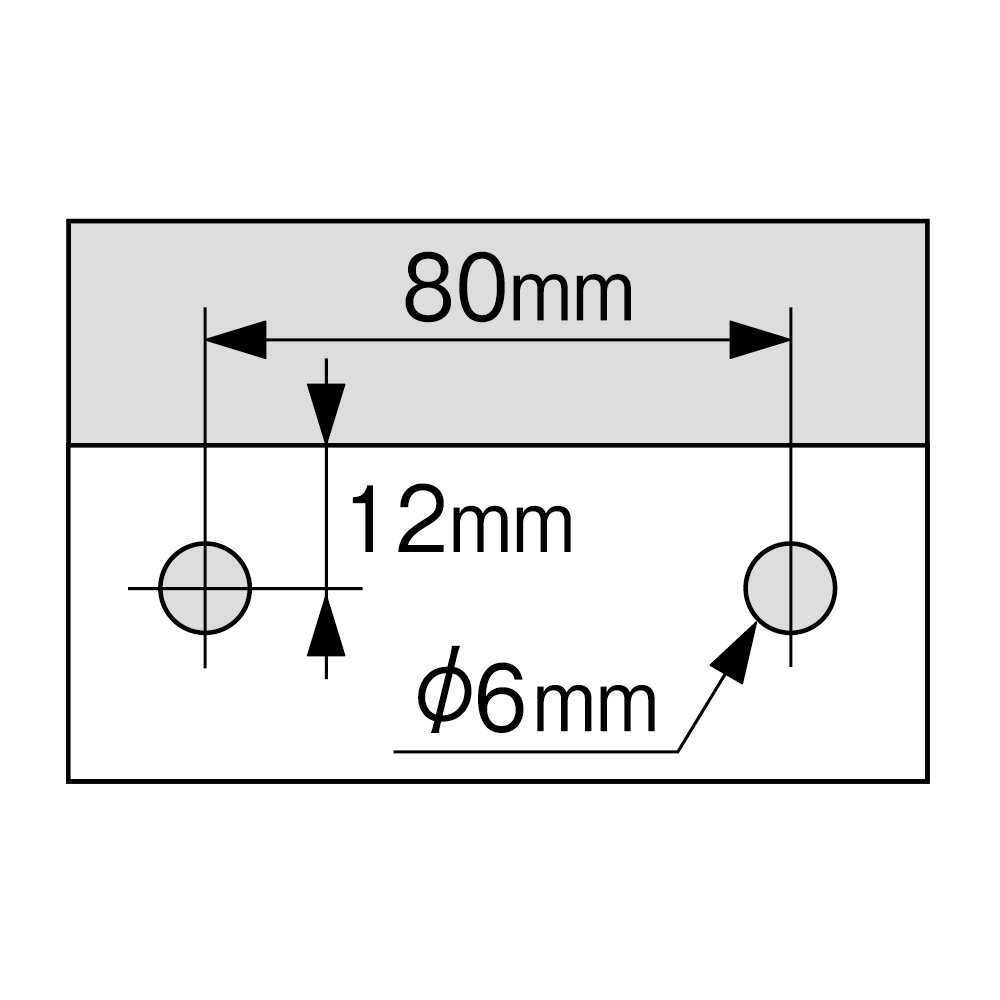 【Perforation number】 18 sheets 【Drilling dimensions】 Hole spacing 80 mm, hole depth 12 mm, hole diameter 6 mm [Paper Size] A 3 to B 6 Short Edge / A 4 to B 5 Long Edge / LTR Long Edge