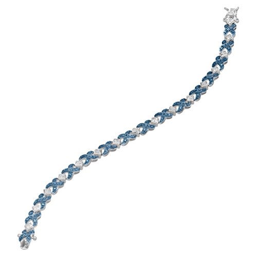 This glitzy tennis bracelet is a sleek, modern must-have that will complement all of your outfits. A classy alternating "XOXO" design is enhanced with a blue diamond accent in a setting of sterling silver over brass, which is finished with a safety clasp. The bracelet measures 7 1/4 inches in length. Although simple enough for everyday wear, the diamonds and added dose of color provide a touch of glamour for fancier occasions.