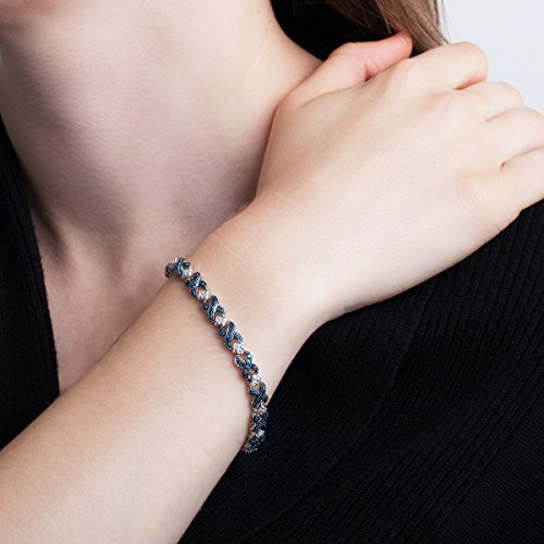 It's no doubt that blue diamonds will be in style for years to come, offering a chic cool-toned look. Not only is this tennis bracelet simply a stylish piece, the silver-plated brass material also allows you to enjoy the radiance of sterling silver combined with the affordability of brass. This shining piece makes a great addition to your jewelry collection, and is also a wonderful gift for holidays or birthdays. Plus, it comes with a small keepsake box for easy gifting and storage.